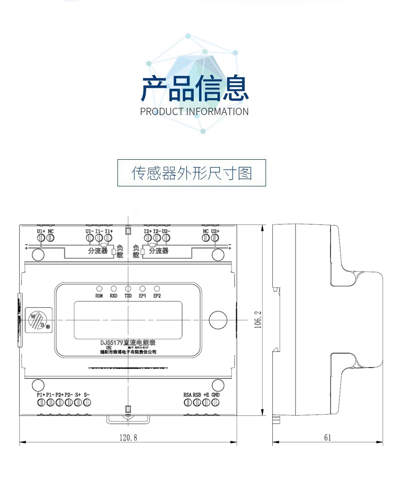 DJS5179双路直流电能表是新一代可编程智能仪表,支持两路直流信号隔离检测。本产品配备RS-485通信接口,支持DL/T645-2007和MODBUS-RTU通信协议,可用于直流充电桩、直流电源等信号设备的电压、电流、功率以及电能的检测和计量。